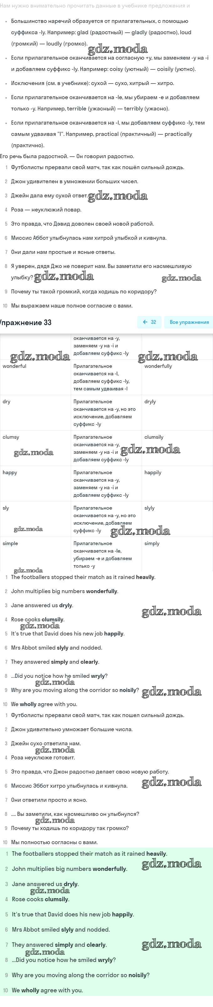 ГДЗ решение к заданию № 33 Английский язык 8 класс Афанасьева (Углубленный уровень) Просвещение 2014 Углубленный уровень ФГОС бесплатно на гдз.мода!