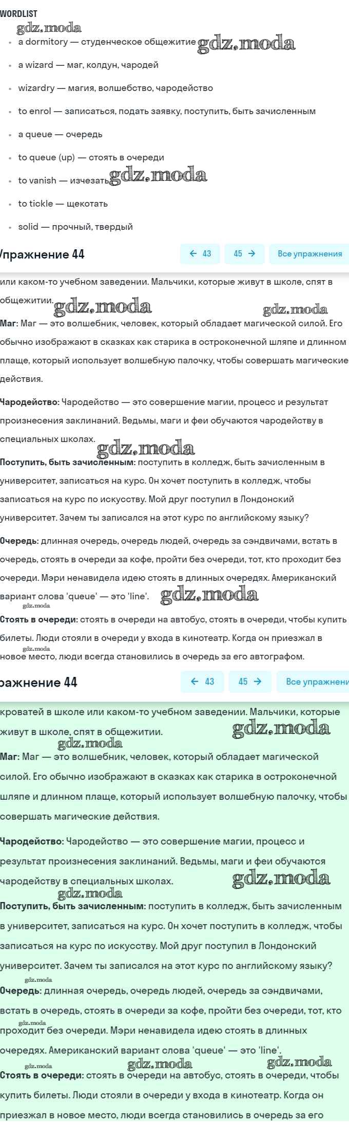 ГДЗ решение к заданию № 44 Английский язык 8 класс Афанасьева (Углубленный уровень) Просвещение 2014 Углубленный уровень ФГОС бесплатно на гдз.мода!