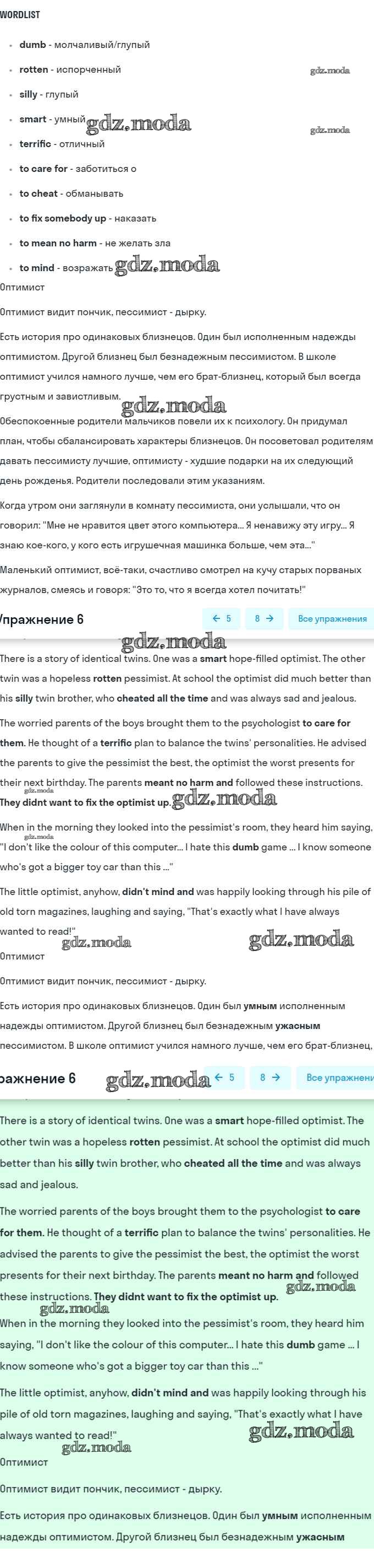 ГДЗ решение к заданию № 6 Английский язык 8 класс Афанасьева (Углубленный уровень) Просвещение 2014 Углубленный уровень ФГОС бесплатно на гдз.мода!