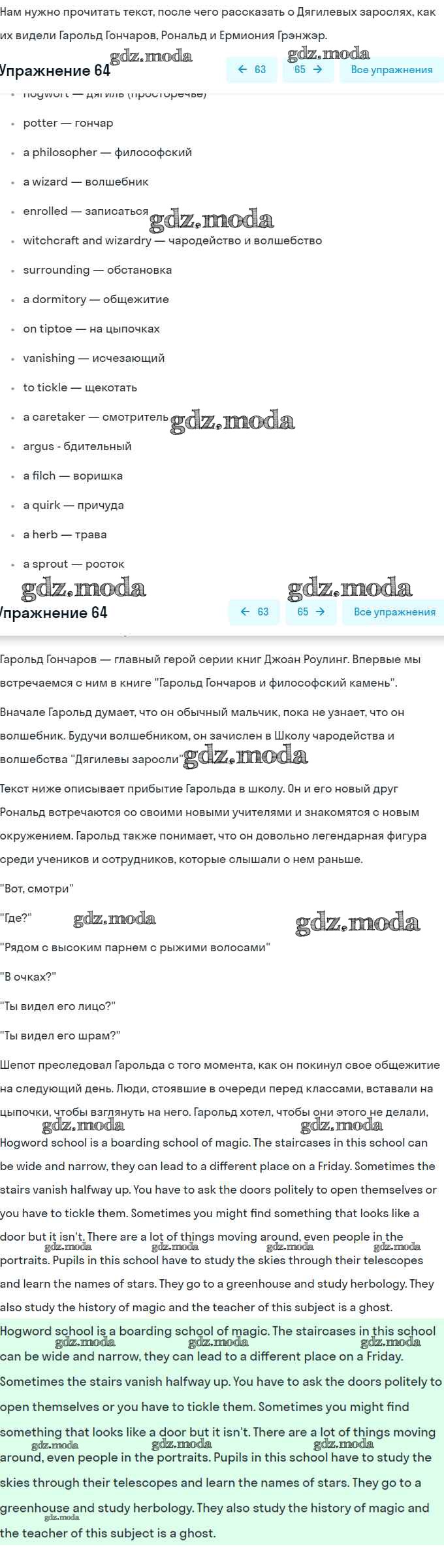 ГДЗ решение к заданию № 64 Английский язык 8 класс Афанасьева (Углубленный уровень) Просвещение 2014 Углубленный уровень ФГОС бесплатно на гдз.мода!