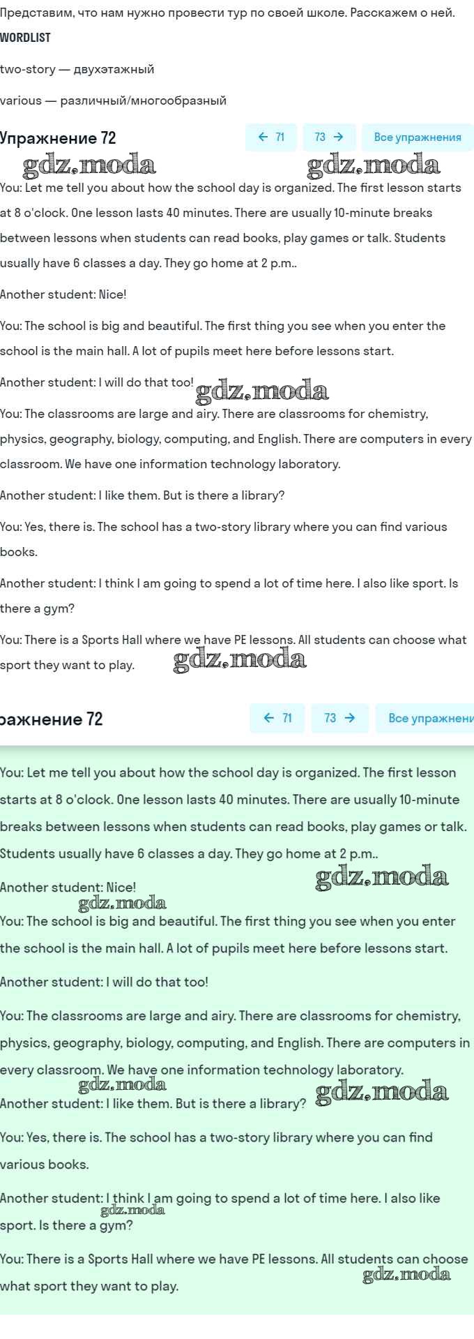 ГДЗ решение к заданию № 72 Английский язык 8 класс Афанасьева (Углубленный уровень) Просвещение 2014 Углубленный уровень ФГОС бесплатно на гдз.мода!