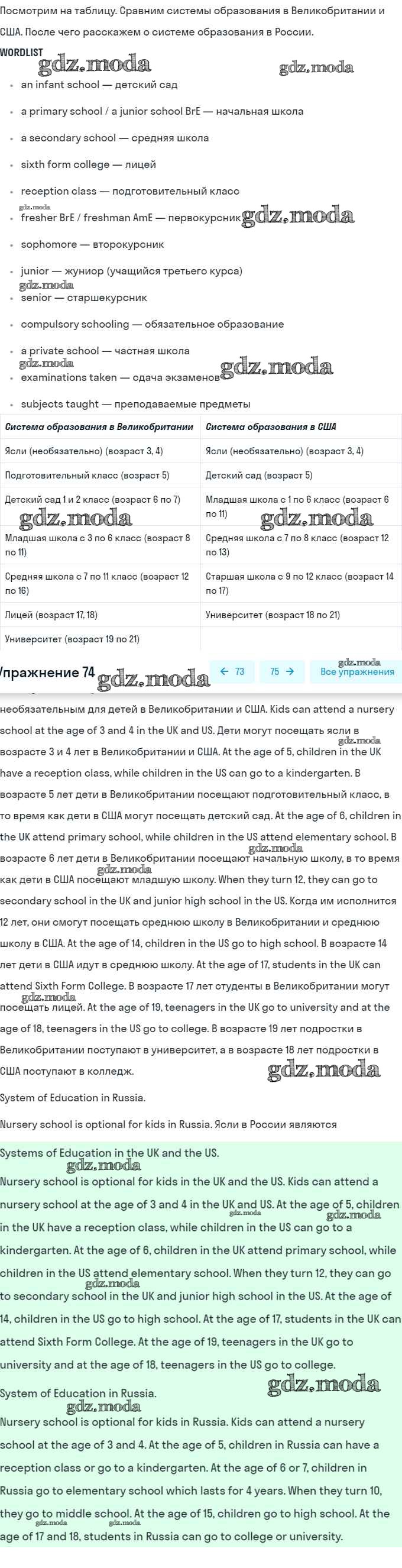 ГДЗ решение к заданию № 74 Английский язык 8 класс Афанасьева (Углубленный уровень) Просвещение 2014 Углубленный уровень ФГОС бесплатно на гдз.мода!