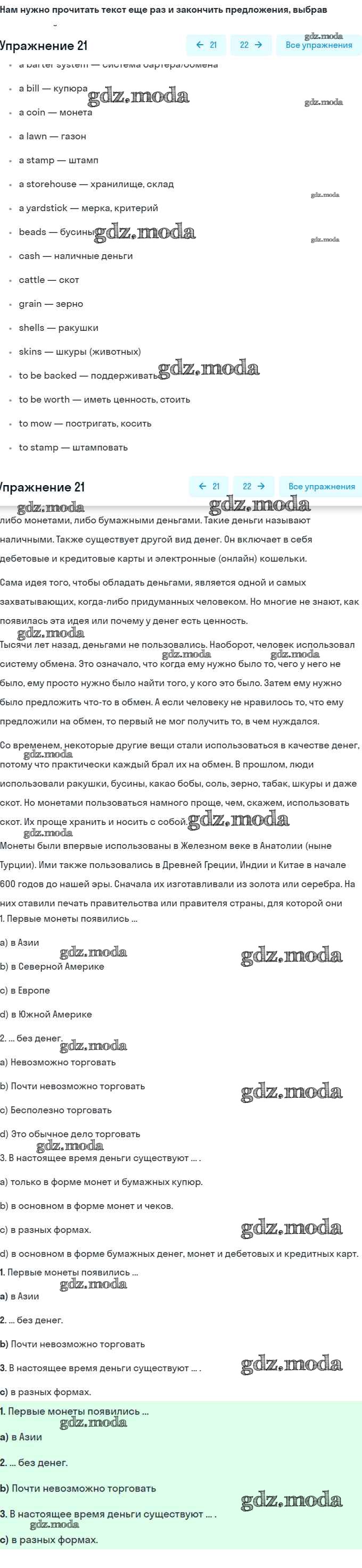 ГДЗ решение к заданию № 21 Английский язык 8 класс Афанасьева (Углубленный уровень) Просвещение 2014 Углубленный уровень ФГОС бесплатно на гдз.мода!