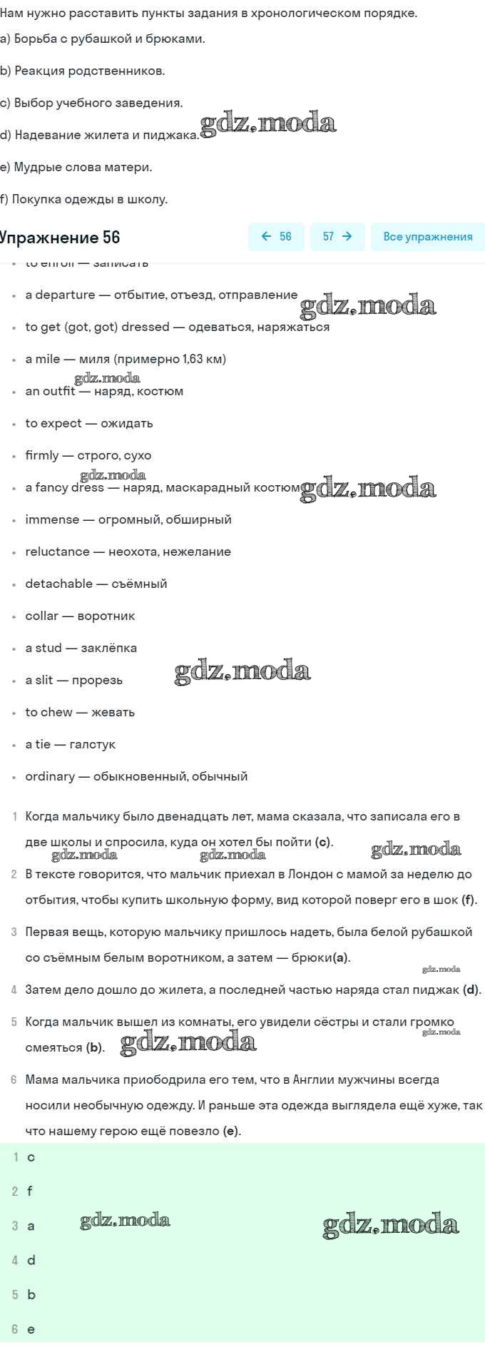 ГДЗ решение к заданию № 56 Английский язык 8 класс Афанасьева (Углубленный уровень) Просвещение 2014 Углубленный уровень ФГОС бесплатно на гдз.мода!