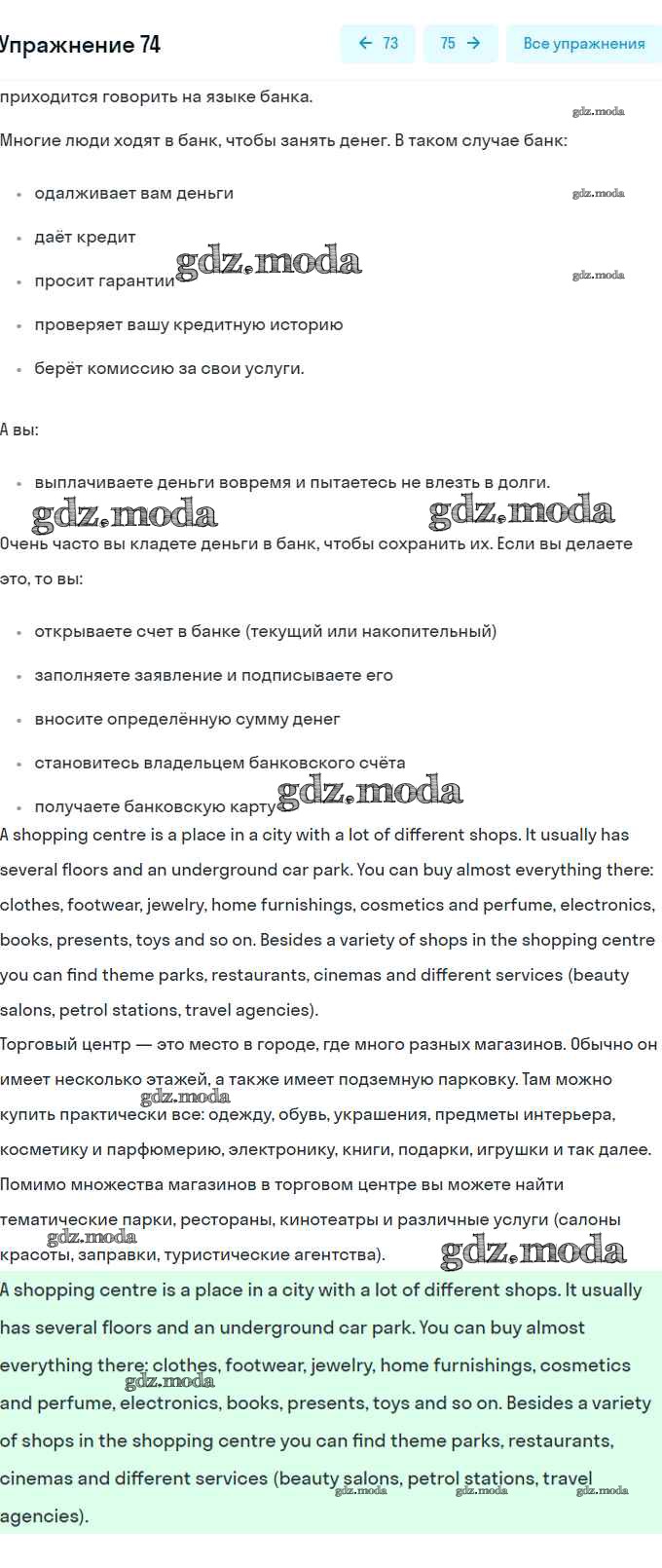 ГДЗ решение к заданию № 74 Английский язык 8 класс Афанасьева (Углубленный уровень) Просвещение 2014 Углубленный уровень ФГОС бесплатно на гдз.мода!