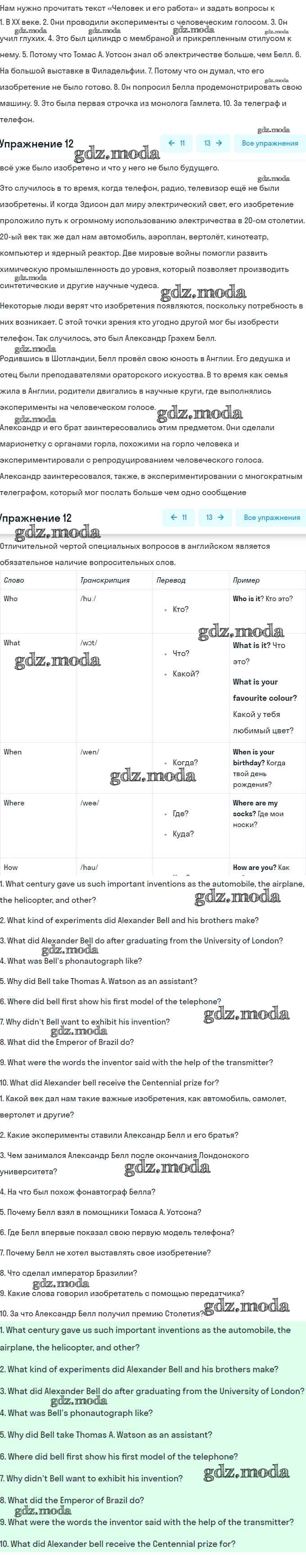 ГДЗ решение к заданию № 12 Английский язык 8 класс Афанасьева (Углубленный уровень) Просвещение 2014 Углубленный уровень ФГОС бесплатно на гдз.мода!