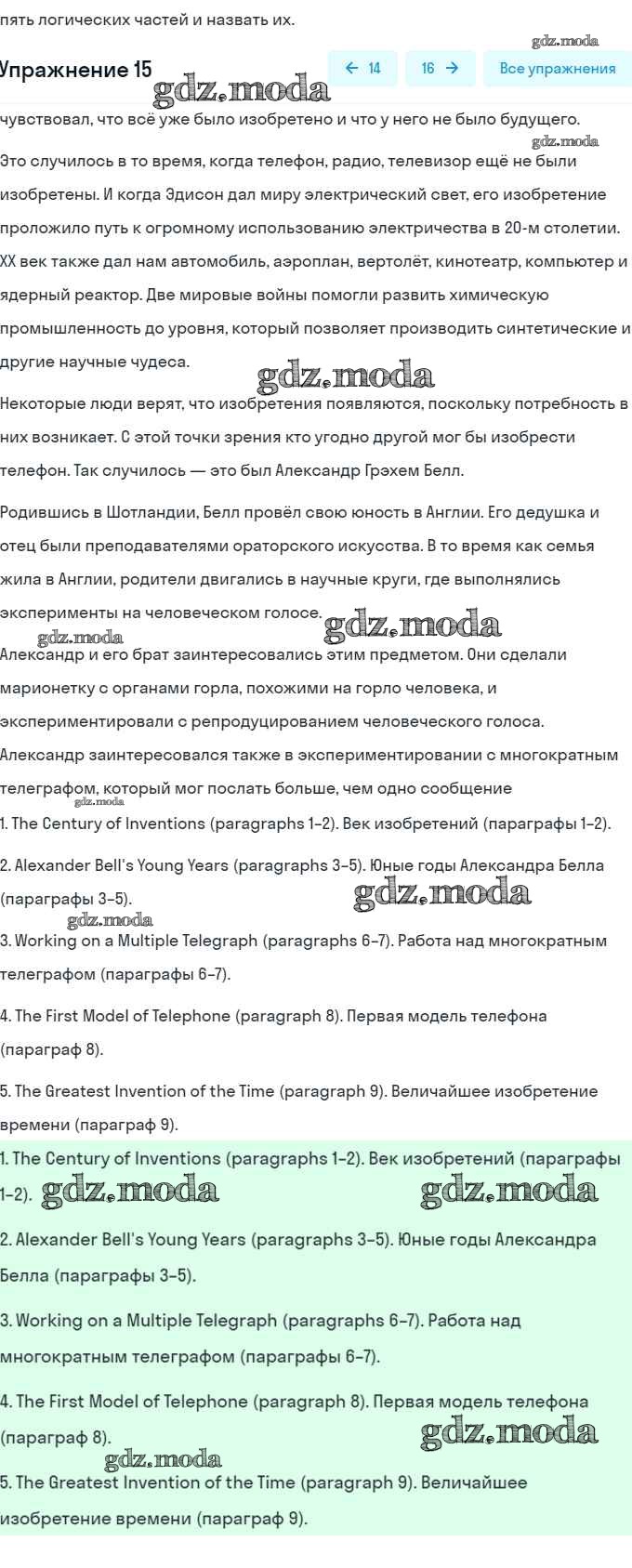 ГДЗ решение к заданию № 15 Английский язык 8 класс Афанасьева (Углубленный уровень) Просвещение 2014 Углубленный уровень ФГОС бесплатно на гдз.мода!