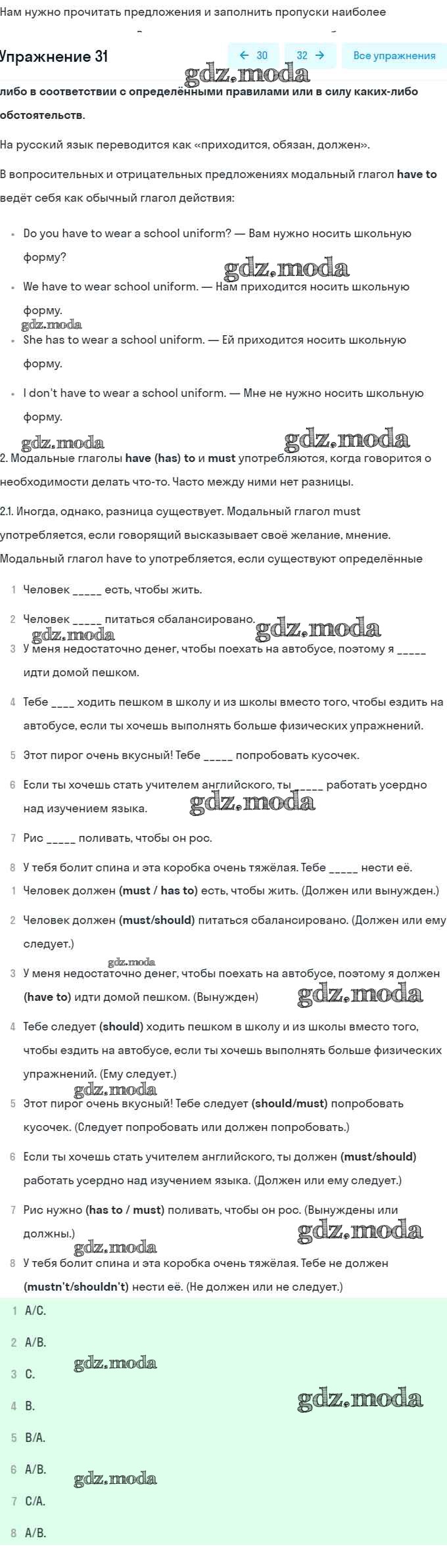 ГДЗ решение к заданию № 31 Английский язык 8 класс Афанасьева (Углубленный уровень) Просвещение 2014 Углубленный уровень ФГОС бесплатно на гдз.мода!