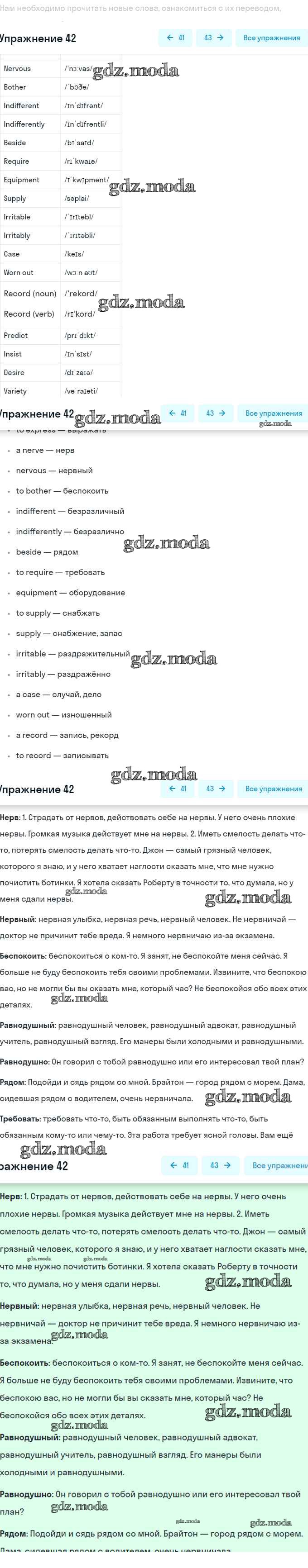 ГДЗ решение к заданию № 42 Английский язык 8 класс Афанасьева (Углубленный уровень) Просвещение 2014 Углубленный уровень ФГОС бесплатно на гдз.мода!