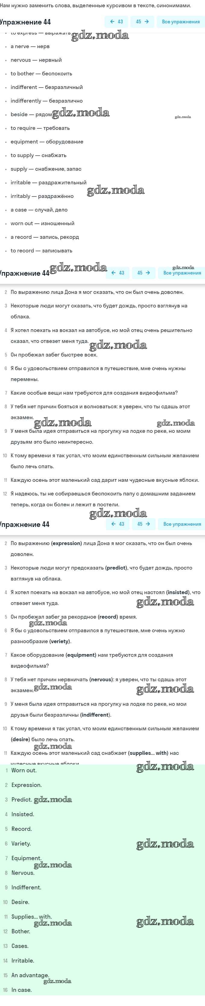 ГДЗ решение к заданию № 44 Английский язык 8 класс Афанасьева (Углубленный уровень) Просвещение 2014 Углубленный уровень ФГОС бесплатно на гдз.мода!