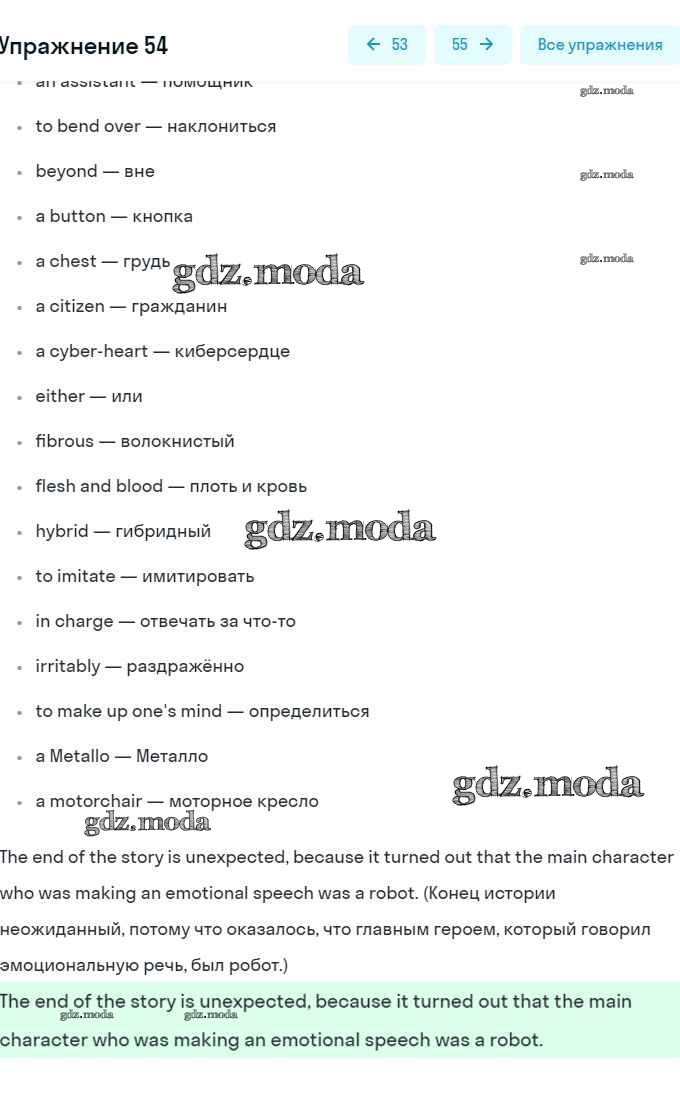 ГДЗ решение к заданию № 54 Английский язык 8 класс Афанасьева (Углубленный уровень) Просвещение 2014 Углубленный уровень ФГОС бесплатно на гдз.мода!