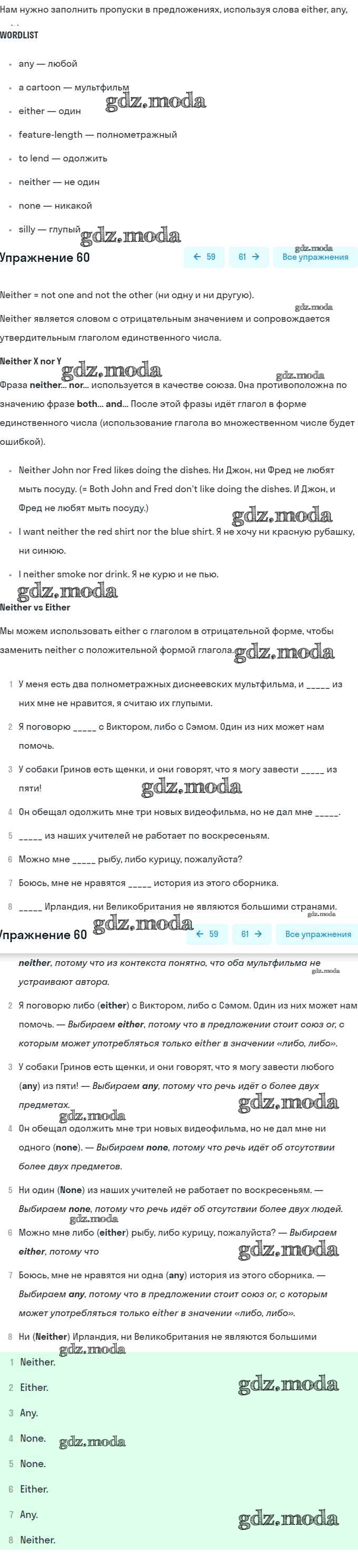 ГДЗ решение к заданию № 60 Английский язык 8 класс Афанасьева (Углубленный уровень) Просвещение 2014 Углубленный уровень ФГОС бесплатно на гдз.мода!