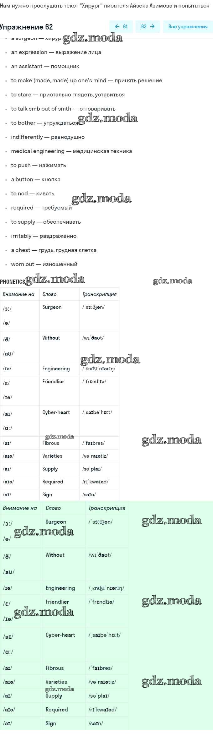 ГДЗ решение к заданию № 62 Английский язык 8 класс Афанасьева (Углубленный уровень) Просвещение 2014 Углубленный уровень ФГОС бесплатно на гдз.мода!