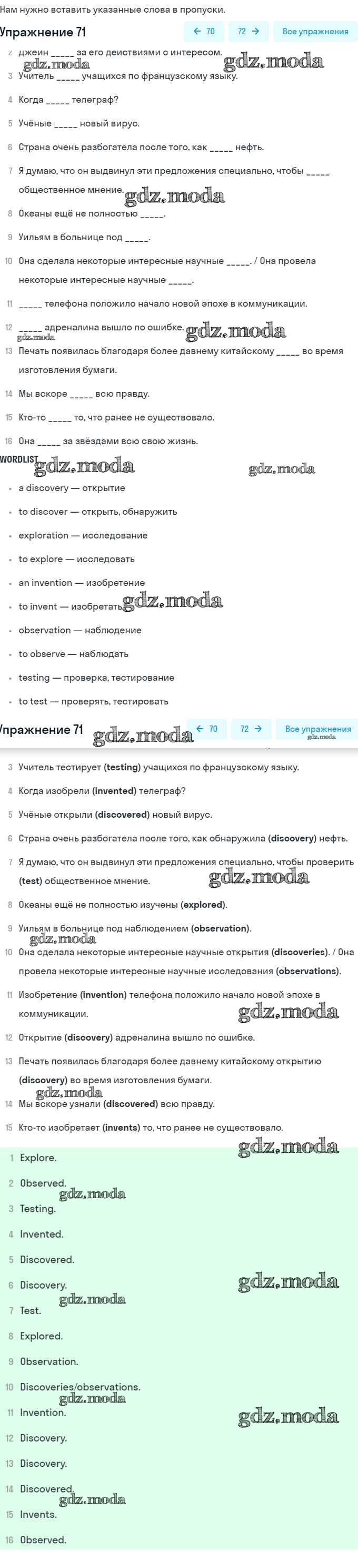 ГДЗ решение к заданию № 71 Английский язык 8 класс Афанасьева (Углубленный уровень) Просвещение 2014 Углубленный уровень ФГОС бесплатно на гдз.мода!