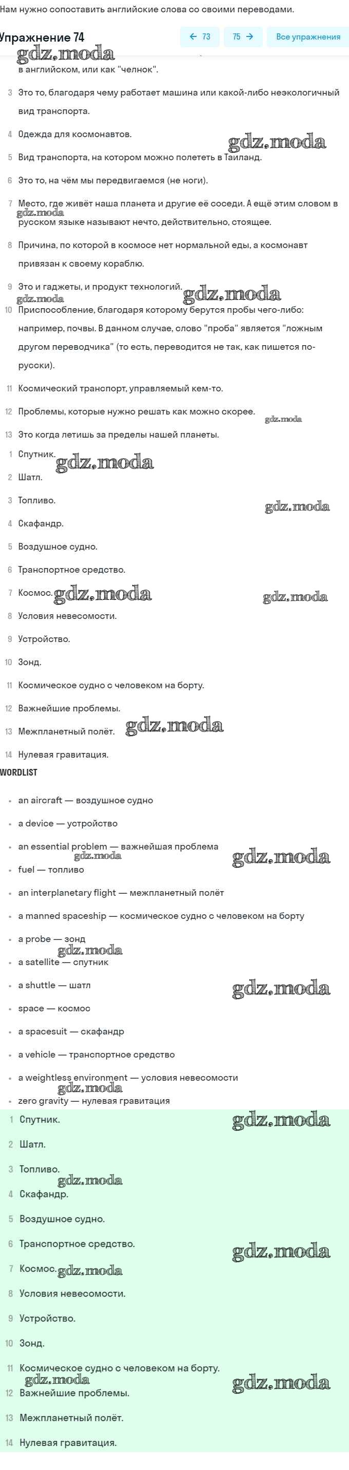 ГДЗ решение к заданию № 74 Английский язык 8 класс Афанасьева (Углубленный уровень) Просвещение 2014 Углубленный уровень ФГОС бесплатно на гдз.мода!