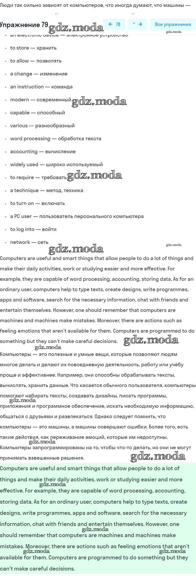 ГДЗ решение к заданию № 79 Английский язык 8 класс Афанасьева (Углубленный уровень) Просвещение 2014 Углубленный уровень ФГОС бесплатно на гдз.мода!