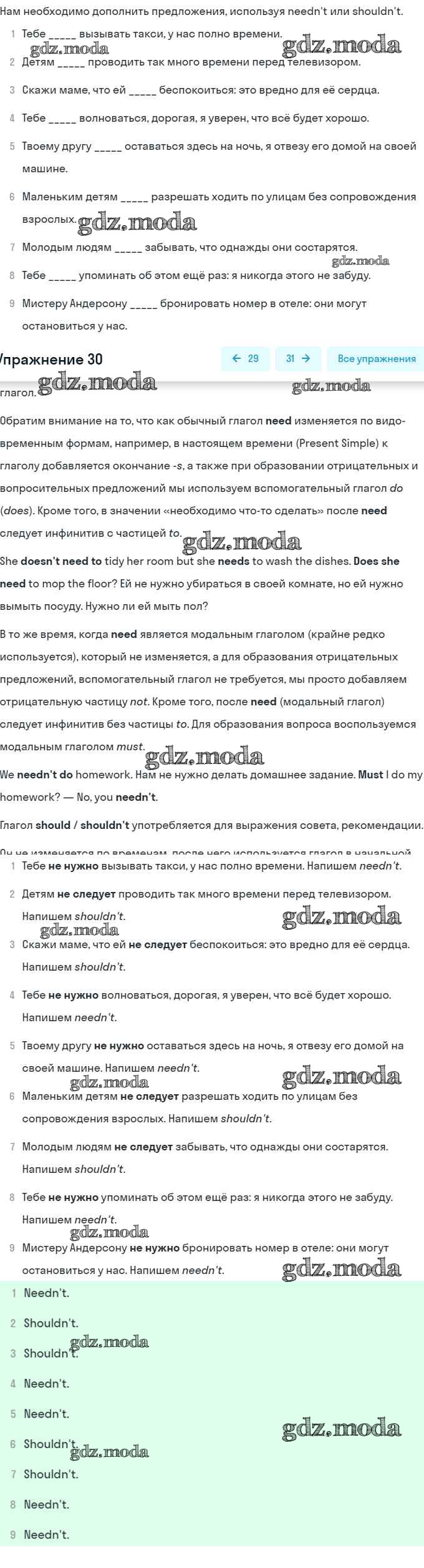 ГДЗ решение к заданию № 30 Английский язык 8 класс Афанасьева (Углубленный уровень) Просвещение 2014 Углубленный уровень ФГОС бесплатно на гдз.мода!