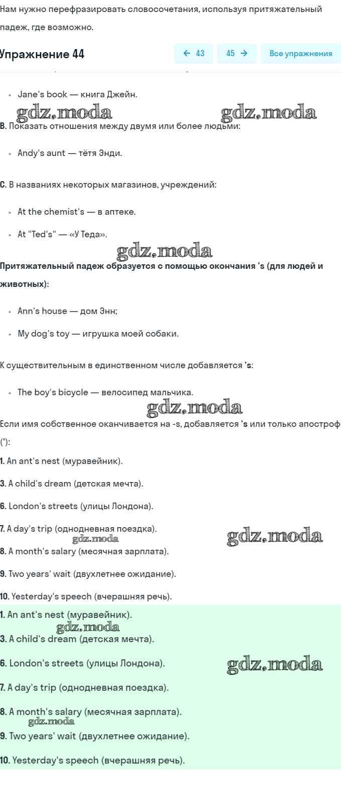 ГДЗ решение к заданию № 44 Английский язык 8 класс Афанасьева (Углубленный уровень) Просвещение 2014 Углубленный уровень ФГОС бесплатно на гдз.мода!