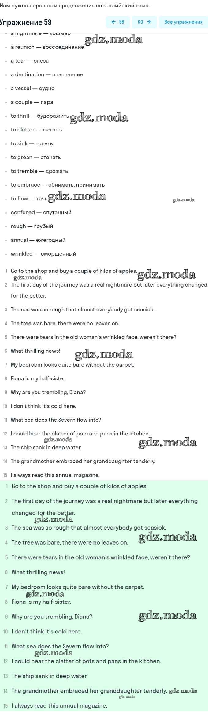 ГДЗ решение к заданию № 59 Английский язык 8 класс Афанасьева (Углубленный уровень) Просвещение 2014 Углубленный уровень ФГОС бесплатно на гдз.мода!