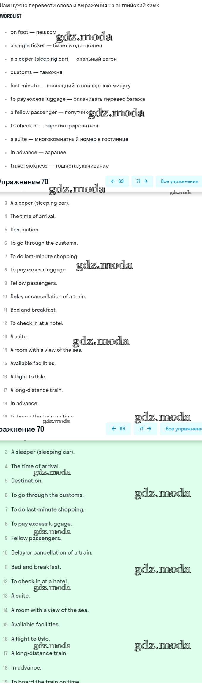 ГДЗ решение к заданию № 70 Английский язык 8 класс Афанасьева (Углубленный уровень) Просвещение 2014 Углубленный уровень ФГОС бесплатно на гдз.мода!
