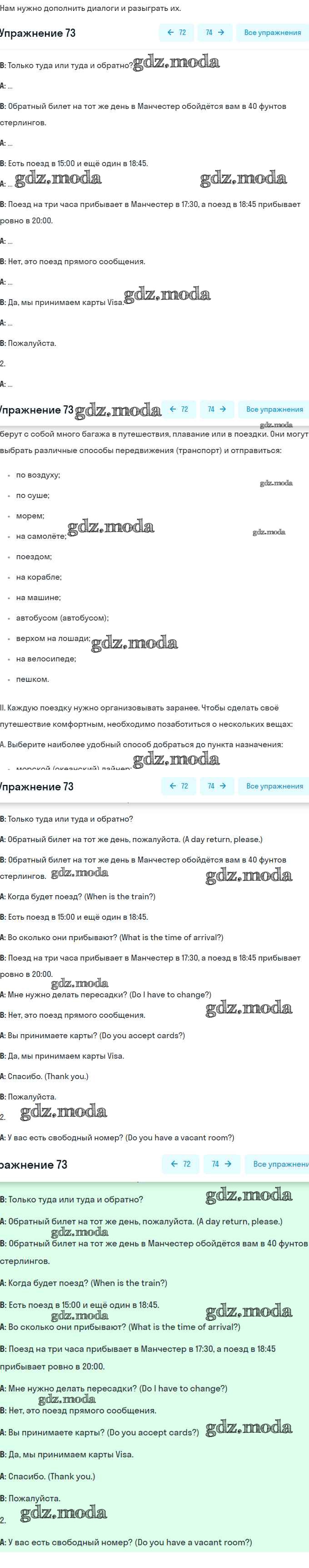ГДЗ решение к заданию № 73 Английский язык 8 класс Афанасьева (Углубленный уровень) Просвещение 2014 Углубленный уровень ФГОС бесплатно на гдз.мода!