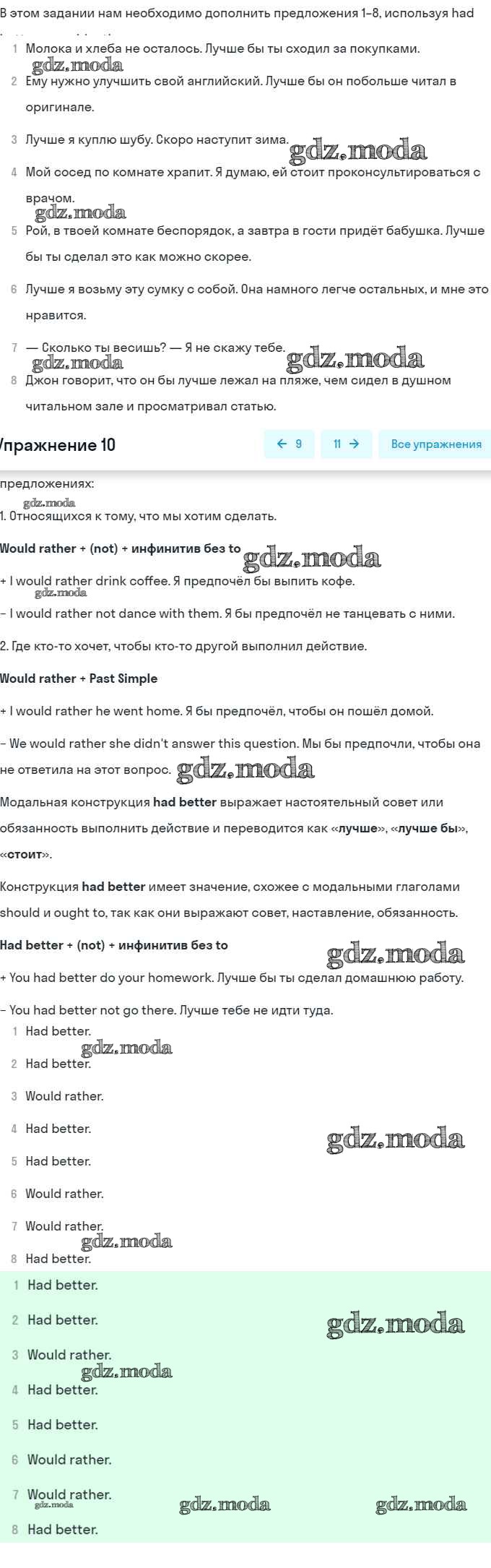 ГДЗ решение к заданию № 10 Английский язык 8 класс Афанасьева (Углубленный уровень) Просвещение 2014 Углубленный уровень ФГОС бесплатно на гдз.мода!