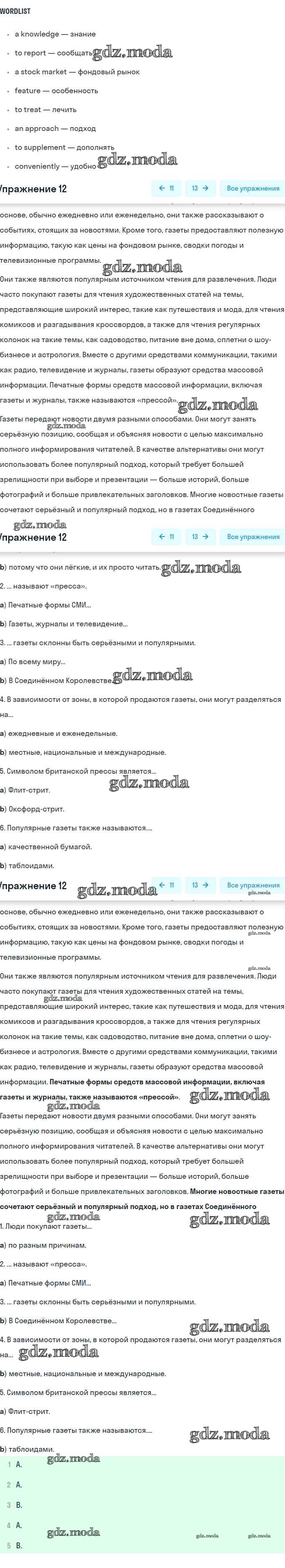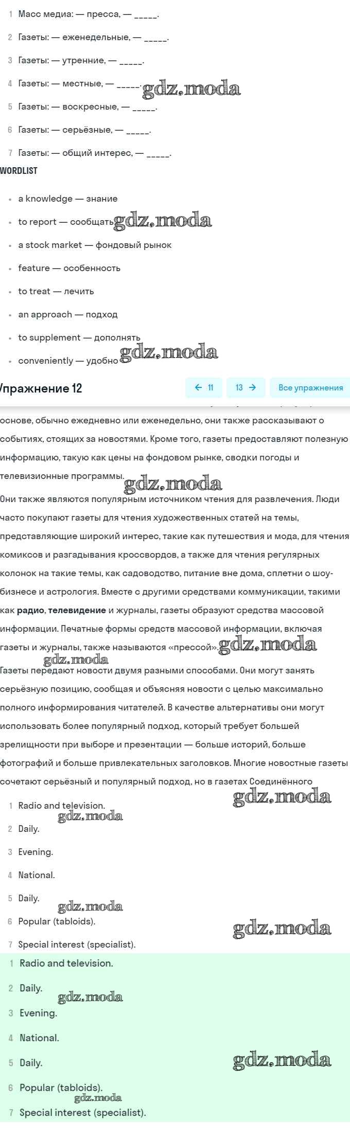ГДЗ решение к заданию № 12 Английский язык 8 класс Афанасьева (Углубленный уровень) Просвещение 2014 Углубленный уровень ФГОС бесплатно на гдз.мода!