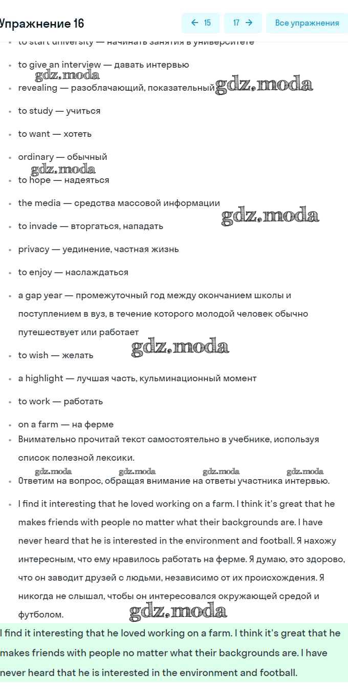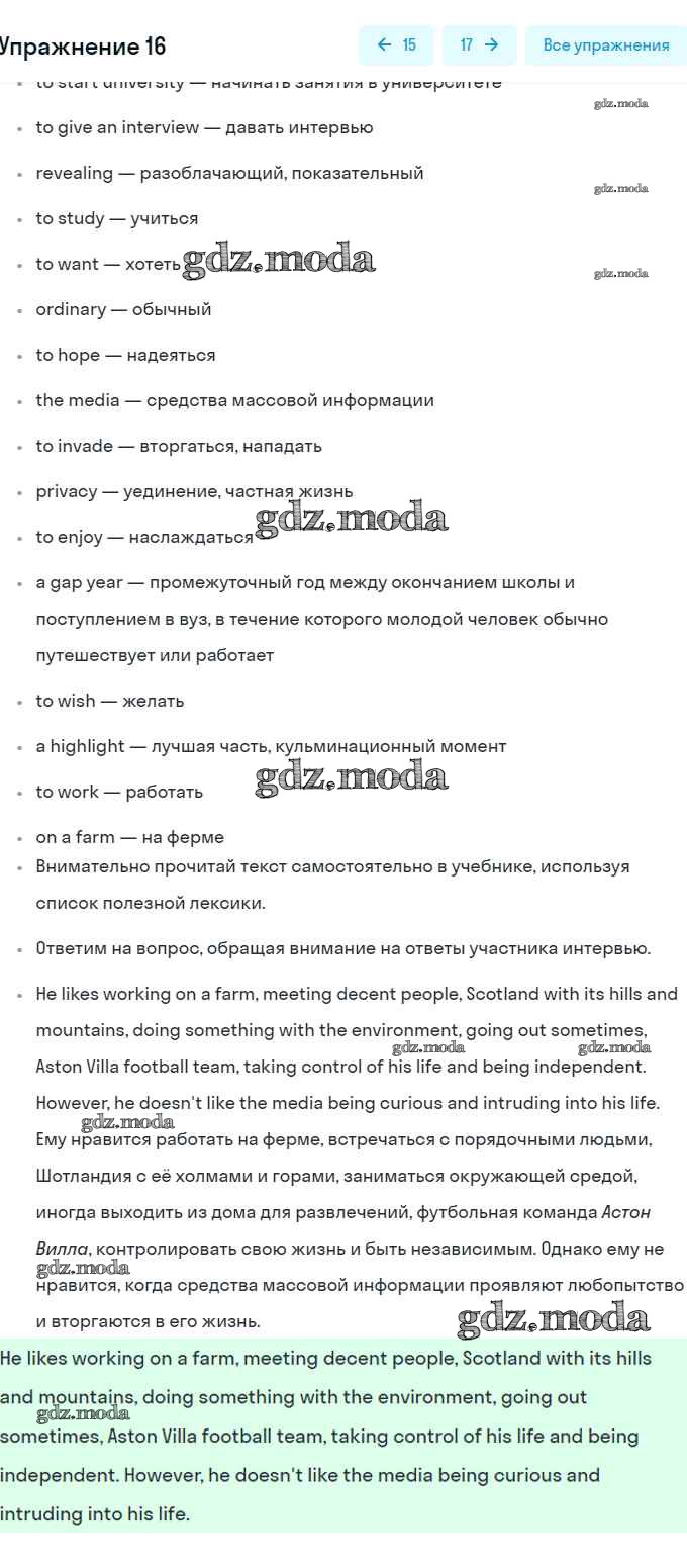 ГДЗ решение к заданию № 16 Английский язык 8 класс Афанасьева (Углубленный уровень) Просвещение 2014 Углубленный уровень ФГОС бесплатно на гдз.мода!