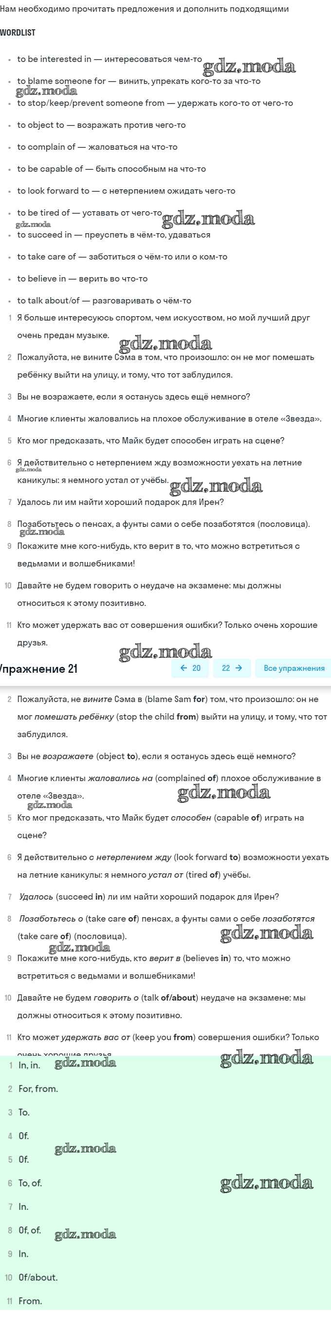 ГДЗ решение к заданию № 21 Английский язык 8 класс Афанасьева (Углубленный уровень) Просвещение 2014 Углубленный уровень ФГОС бесплатно на гдз.мода!