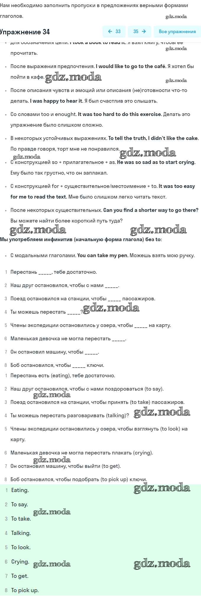 ГДЗ решение к заданию № 34 Английский язык 8 класс Афанасьева (Углубленный уровень) Просвещение 2014 Углубленный уровень ФГОС бесплатно на гдз.мода!