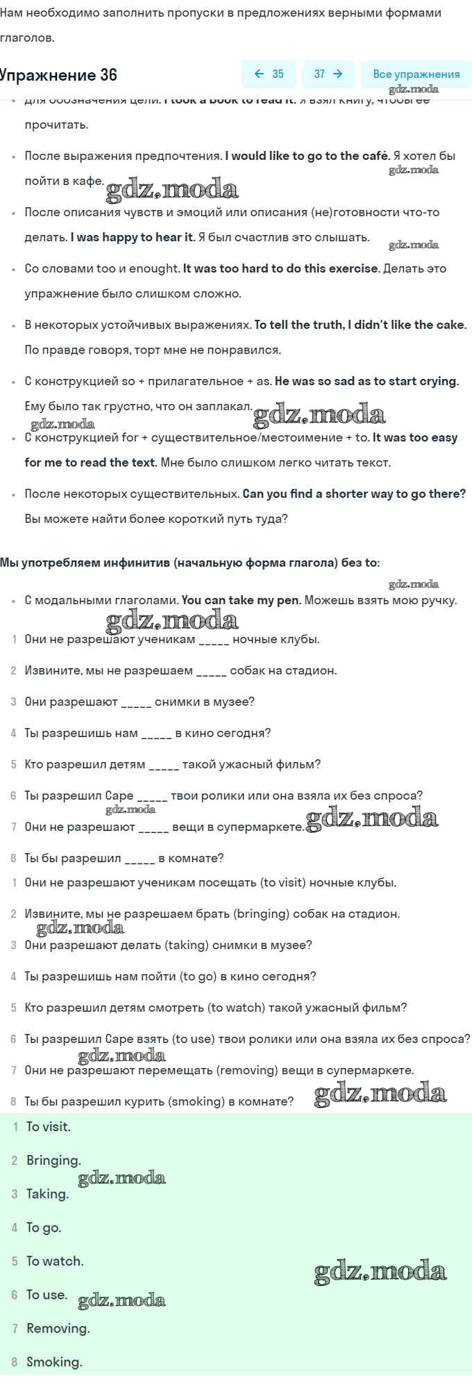 ГДЗ решение к заданию № 36 Английский язык 8 класс Афанасьева (Углубленный уровень) Просвещение 2014 Углубленный уровень ФГОС бесплатно на гдз.мода!
