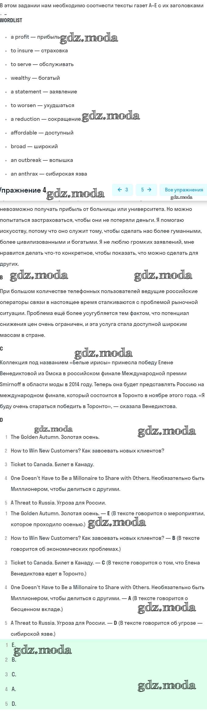 ГДЗ решение к заданию № 4 Английский язык 8 класс Афанасьева (Углубленный уровень) Просвещение 2014 Углубленный уровень ФГОС бесплатно на гдз.мода!