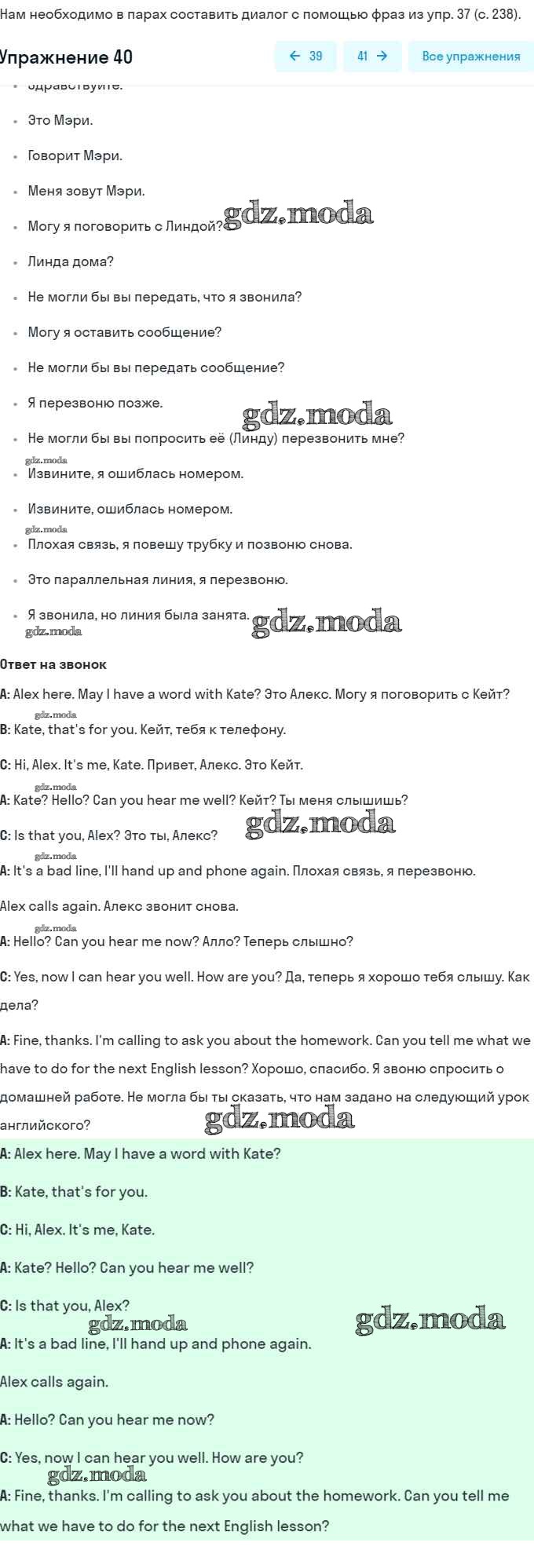 ГДЗ решение к заданию № 40 Английский язык 8 класс Афанасьева (Углубленный уровень) Просвещение 2014 Углубленный уровень ФГОС бесплатно на гдз.мода!