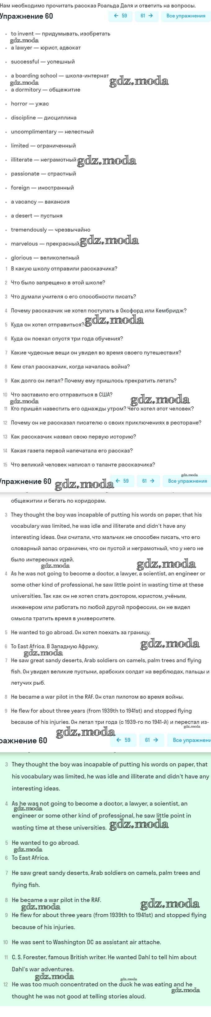 ГДЗ решение к заданию № 60 Английский язык 8 класс Афанасьева (Углубленный уровень) Просвещение 2014 Углубленный уровень ФГОС бесплатно на гдз.мода!