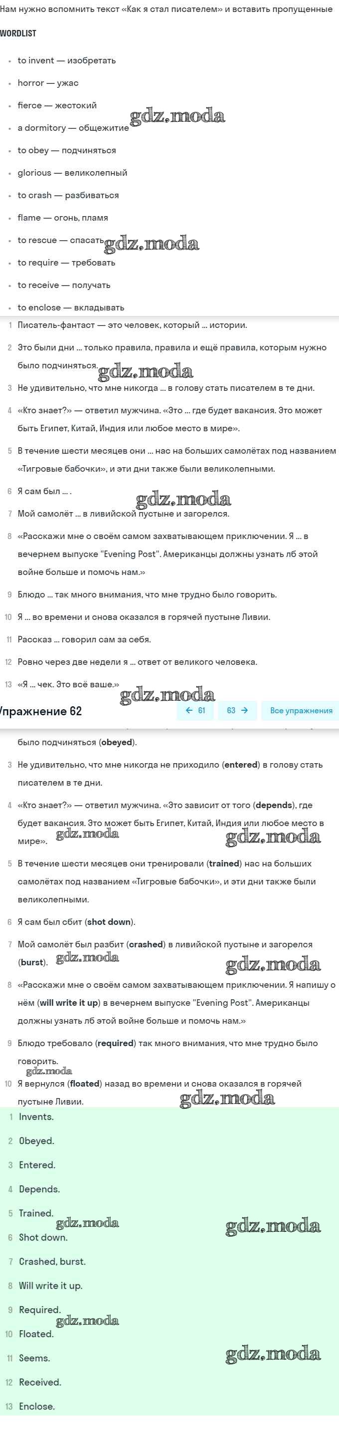ГДЗ решение к заданию № 62 Английский язык 8 класс Афанасьева (Углубленный уровень) Просвещение 2014 Углубленный уровень ФГОС бесплатно на гдз.мода!