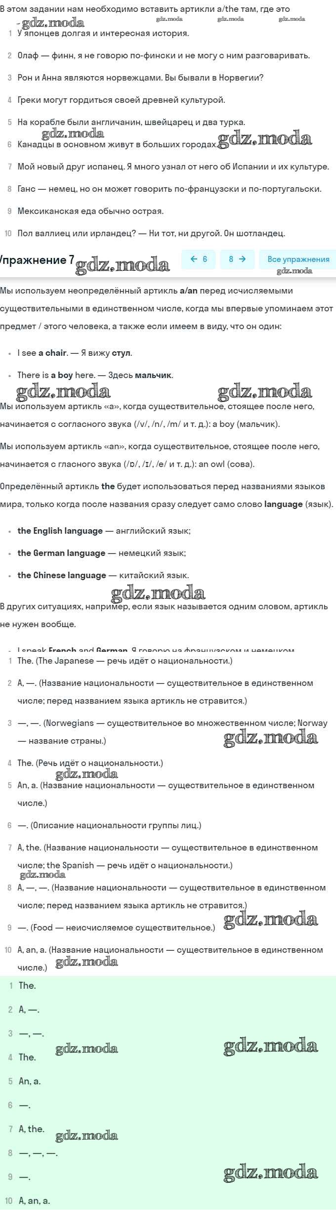 ГДЗ решение к заданию № 7 Английский язык 8 класс Афанасьева (Углубленный уровень) Просвещение 2014 Углубленный уровень ФГОС бесплатно на гдз.мода!