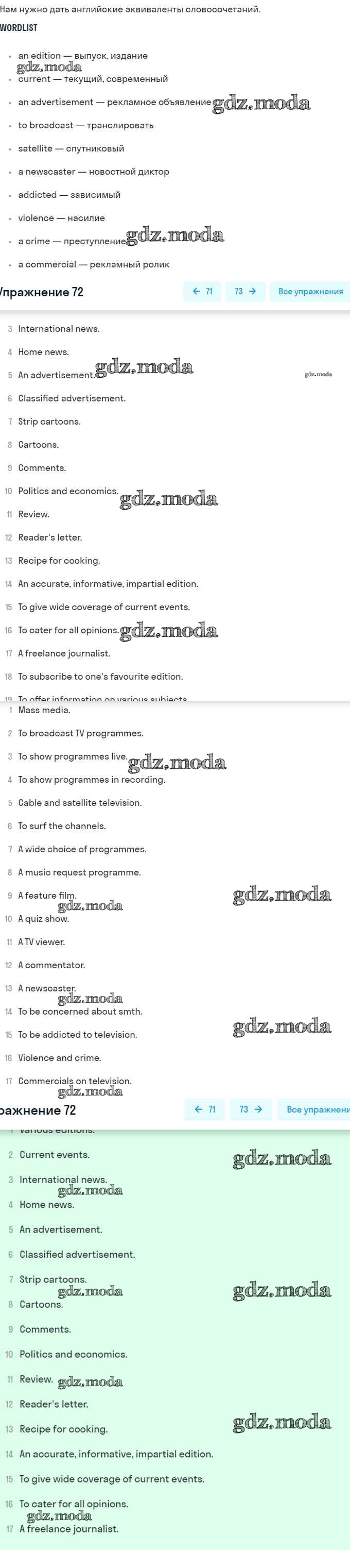 ГДЗ решение к заданию № 72 Английский язык 8 класс Афанасьева (Углубленный уровень) Просвещение 2014 Углубленный уровень ФГОС бесплатно на гдз.мода!