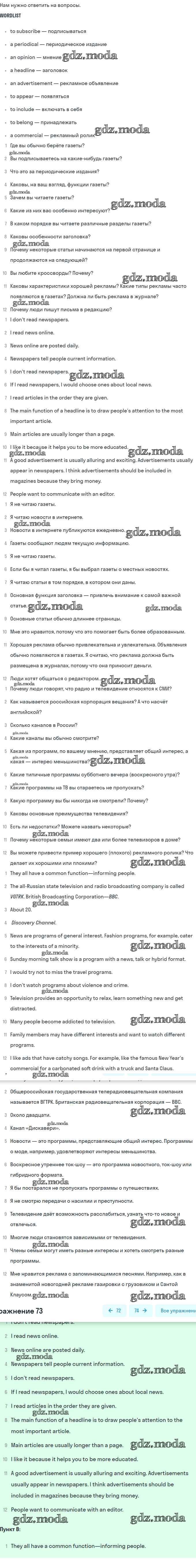 ГДЗ решение к заданию № 73 Английский язык 8 класс Афанасьева (Углубленный уровень) Просвещение 2014 Углубленный уровень ФГОС бесплатно на гдз.мода!