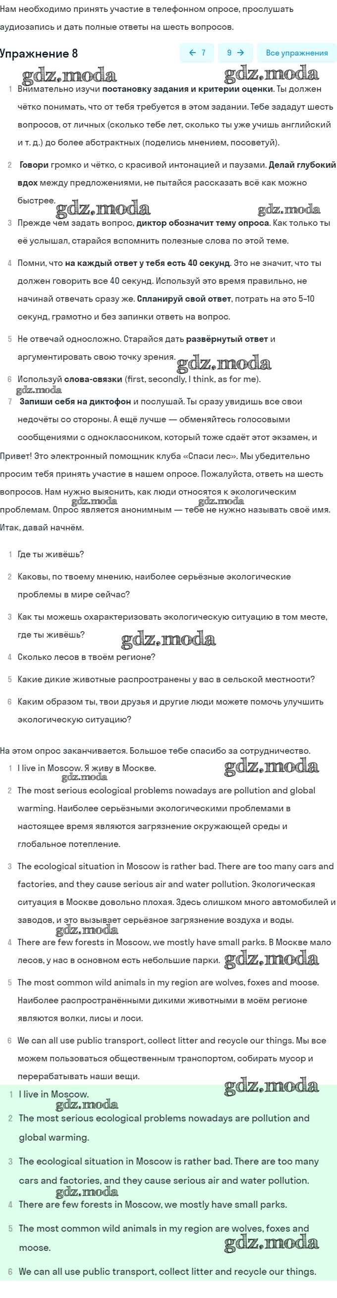 ГДЗ решение к заданию № 8 Английский язык 8 класс Афанасьева (Углубленный уровень) Просвещение 2014 Углубленный уровень ФГОС бесплатно на гдз.мода!