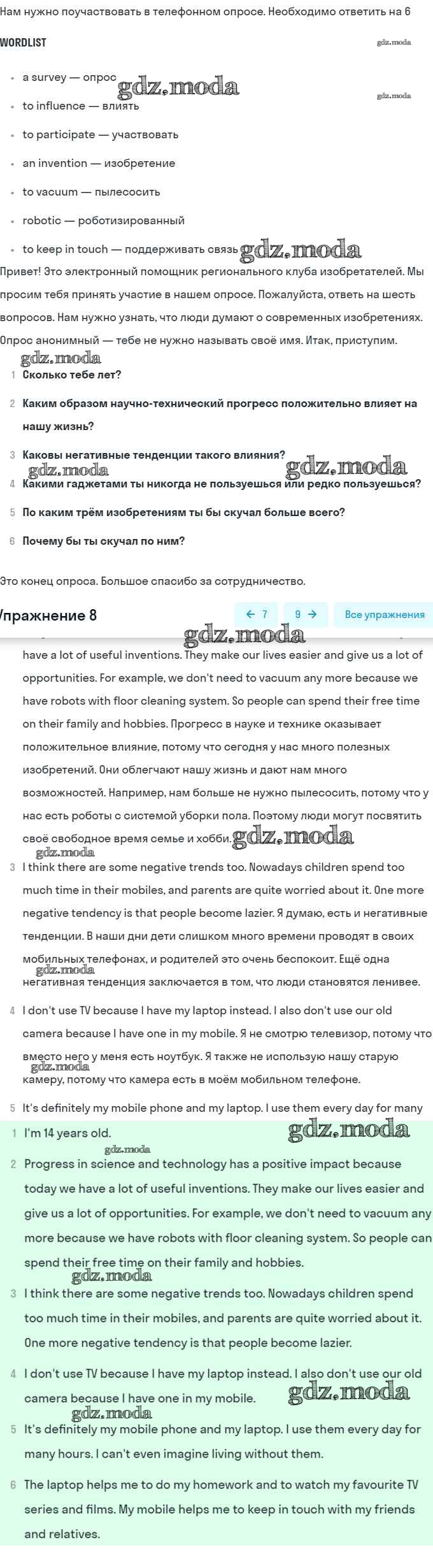 ГДЗ решение к заданию № 8 Английский язык 8 класс Афанасьева (Углубленный уровень) Просвещение 2014 Углубленный уровень ФГОС бесплатно на гдз.мода!