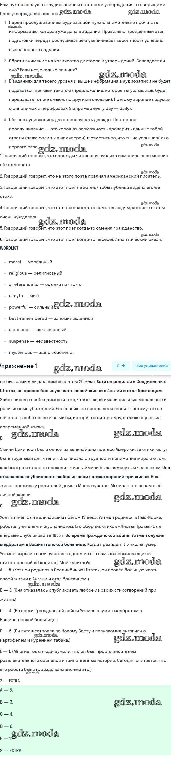 ГДЗ решение к заданию № 1 Английский язык 8 класс Афанасьева (Углубленный уровень) Просвещение 2014 Углубленный уровень ФГОС бесплатно на гдз.мода!