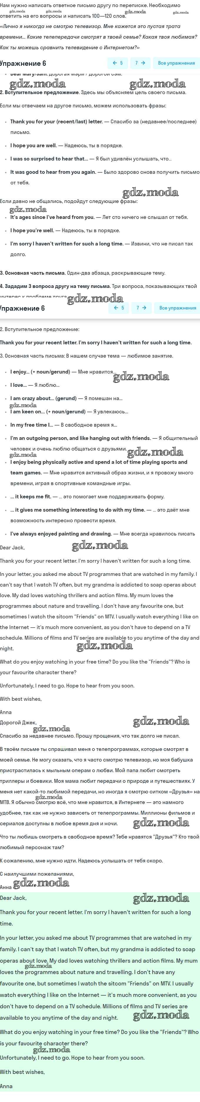 ГДЗ решение к заданию № 6 Английский язык 8 класс Афанасьева (Углубленный уровень) Просвещение 2014 Углубленный уровень ФГОС бесплатно на гдз.мода!