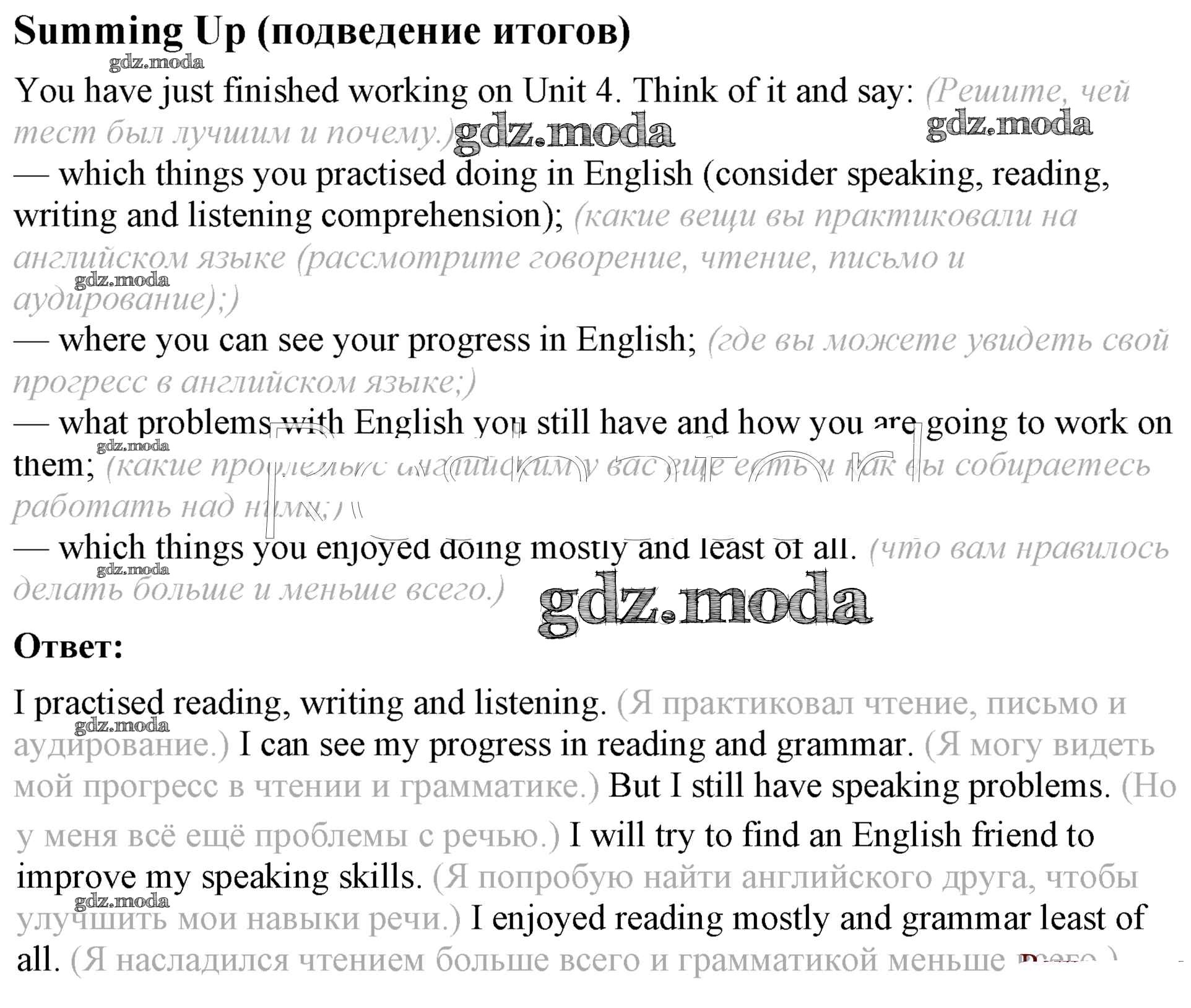 ГДЗ решение к заданию № Summing Up Английский язык 8 класс Афанасьева (Углубленный уровень) Просвещение 2014 Углубленный уровень ФГОС бесплатно на гдз.мода!