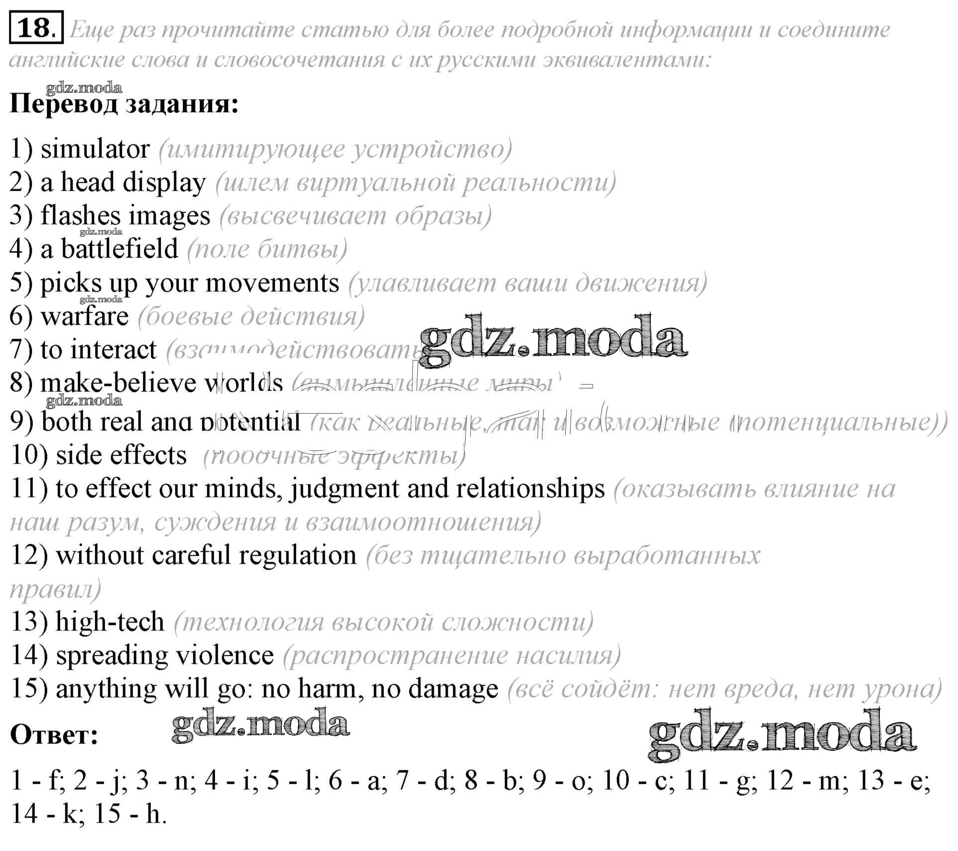 ГДЗ решение к заданию № 18 Английский язык 8 класс Афанасьева (Углубленный уровень) Просвещение 2014 Углубленный уровень ФГОС бесплатно на гдз.мода!