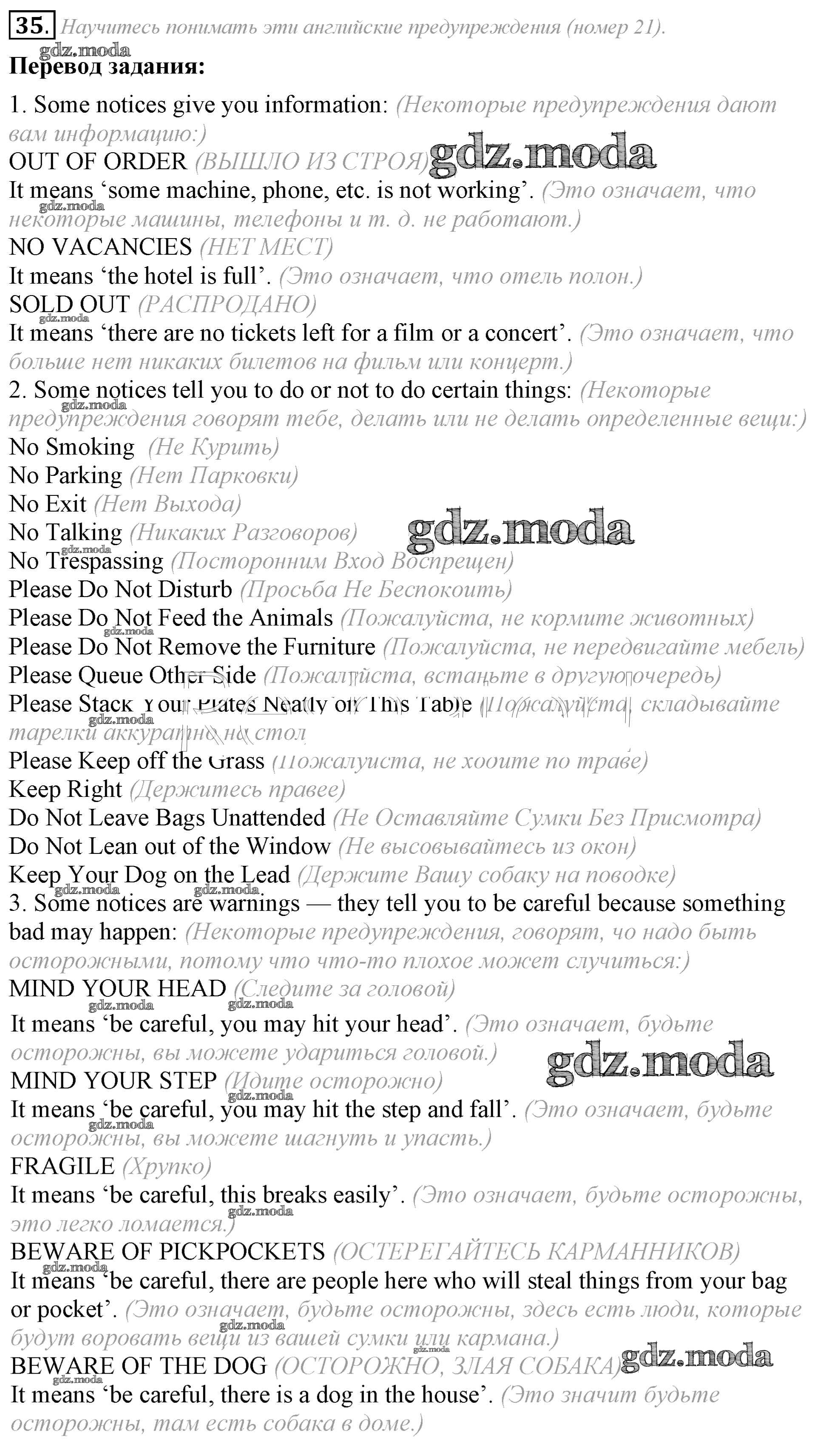 ГДЗ решение к заданию № 35 Английский язык 8 класс Афанасьева (Углубленный уровень) Просвещение 2014 Углубленный уровень ФГОС бесплатно на гдз.мода!