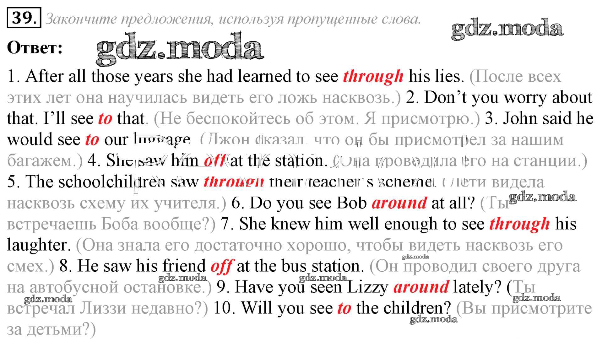 ГДЗ решение к заданию № 39 Английский язык 8 класс Афанасьева (Углубленный уровень) Просвещение 2014 Углубленный уровень ФГОС бесплатно на гдз.мода!