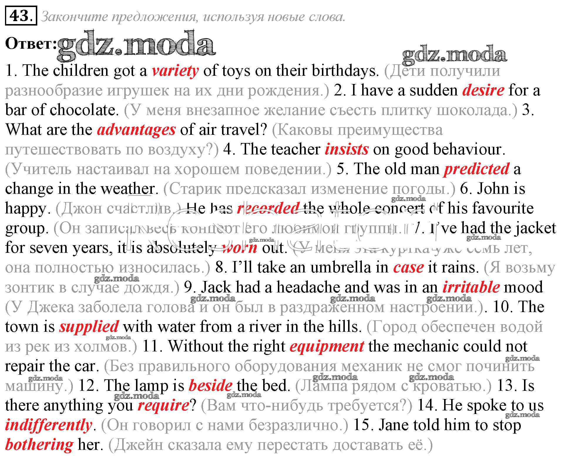 ГДЗ решение к заданию № 43 Английский язык 8 класс Афанасьева (Углубленный уровень) Просвещение 2014 Углубленный уровень ФГОС бесплатно на гдз.мода!