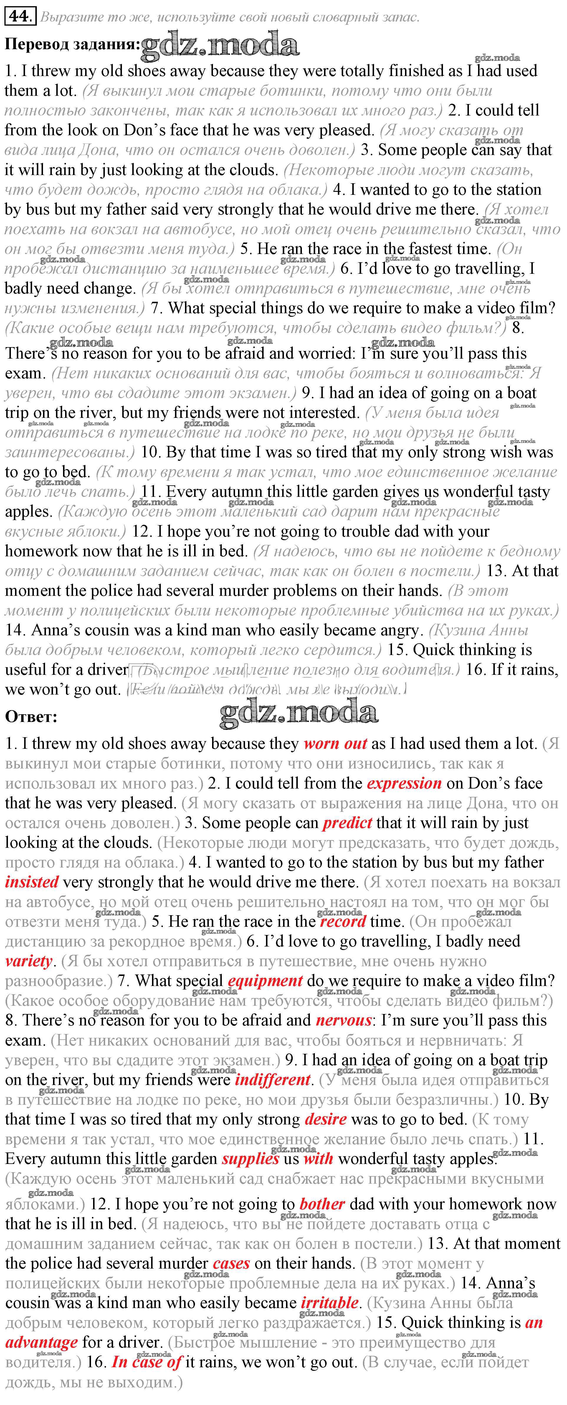ГДЗ решение к заданию № 44 Английский язык 8 класс Афанасьева (Углубленный уровень) Просвещение 2014 Углубленный уровень ФГОС бесплатно на гдз.мода!