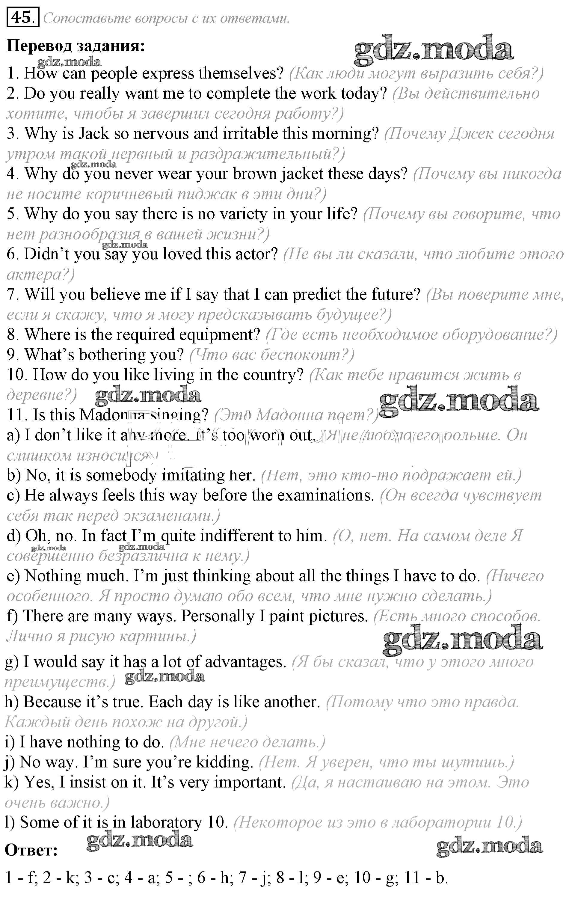 ГДЗ решение к заданию № 45 Английский язык 8 класс Афанасьева (Углубленный уровень) Просвещение 2014 Углубленный уровень ФГОС бесплатно на гдз.мода!
