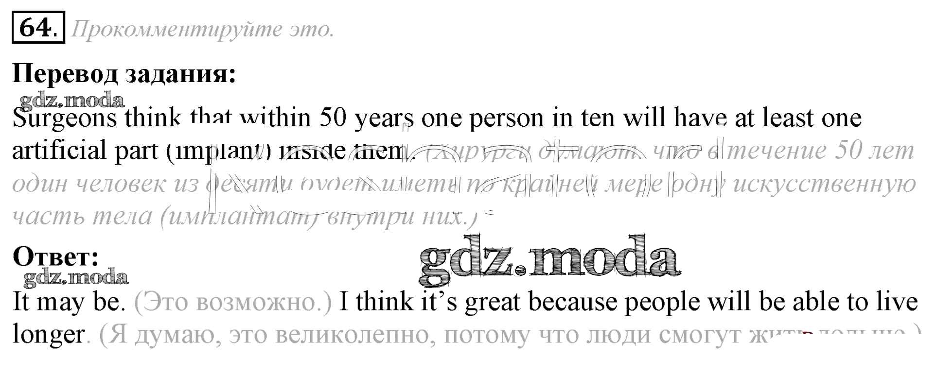 ГДЗ решение к заданию № 64 Английский язык 8 класс Афанасьева (Углубленный уровень) Просвещение 2014 Углубленный уровень ФГОС бесплатно на гдз.мода!